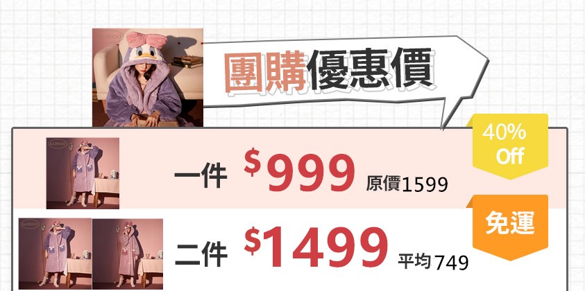 25分鐘前迪士尼官方合作款睡衣法蘭絨 果殼原創睡袍系列 家居外穿兩用 保暖加厚長款 套餐平均一入749 - 免運費2件 到手價=NT$1498